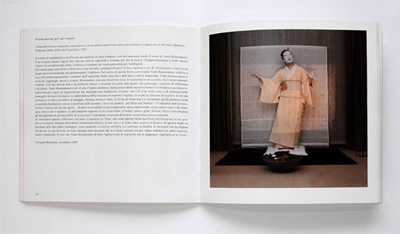 A concludere queste riflessioni, mi piace il pensiero di Yumi, del come appare nella sua Storia del Giappone in tre quadri e 93 parole. Indossa un kimono tradizionale bianco, il suo viso e le mani sono coperte di bianco. In questo modo va incontro alla luce delle immagini, come andando a cercare nell'aria. La scrittura, la bomba, le memorie che ha dipinto lei stessa. La proiezione avviene dunque sulla persona che si è fatta schermo neutro senza smettere un abito marcatamente connotato. E così Yumi Karasumaru diviene figura stessa di ospitalità che è, dapprima, ospitalità di se stessi.
